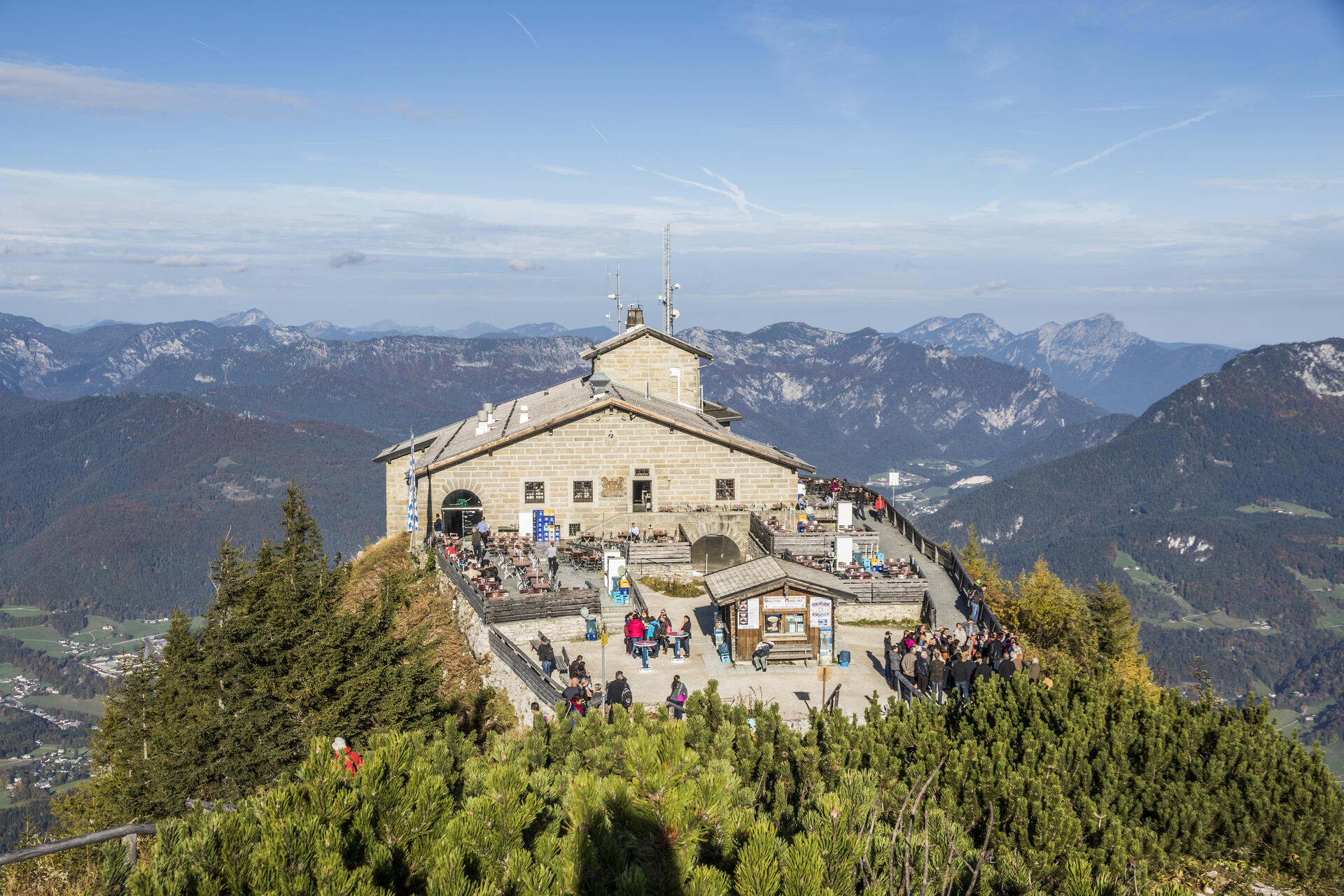 Das Kehlsteinhaus auf 1.834 m Höhe vereint eindrucksvolle Alpenlandschaft mit Zeitgeschichte. Erreichbar über eine spektakuläre Bergstraße eröffnet sich ein einzigartiges Panorama über das Berchtesgadener Land. Rund um den Berg laden gut ausgebaute Wanderwege zu abwechslungsreichen Spaziergängen und leichten Wanderungen in herrlicher Natur ein.